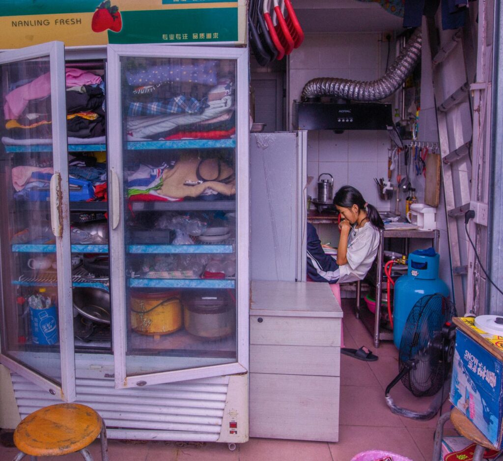 Like all migrants arriving in Shenzhen, I lived in one of these urban villages. I wanted to recreate its atmosphere through my photos. A maze of little sketches where one gets lost very easily, and where the boundary between private life and public life is blurred or even non-existent. The lack of light and the narrowness of the walls may be oppressive, but they hide a vibrant and colorful community.